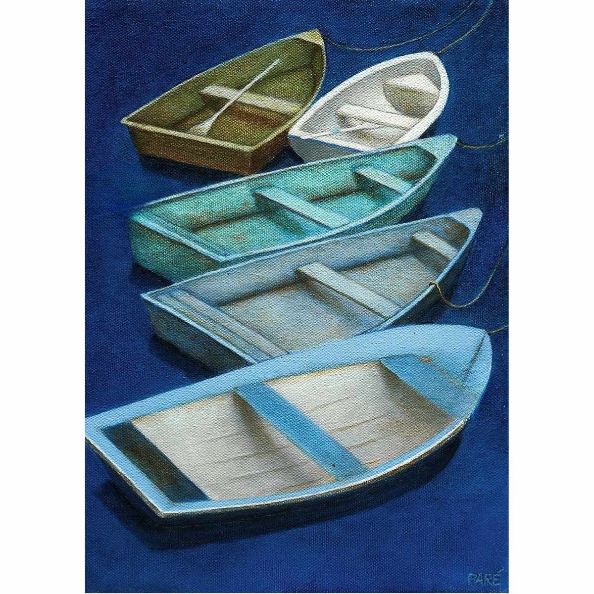 En farverig plakat med motiv af robåde. Reproduceret efter originalt oliemaleri malet med munden af kunstner Mariam Paré fra USA.